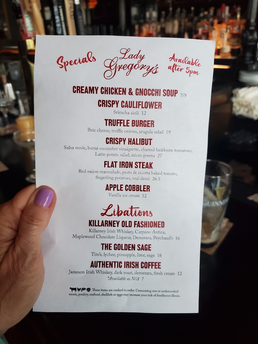 “ Lady Gregory’s Irish Pub was an absolute delight! Everything was on point—fast, friendly service and incredibly tasty food. The Brussels sprouts were out of this world—honestly, the best I’ve had anywhere. They also have a great selection of creative cocktails. I especially loved the Irish coffee—so flavorful and smooth! I didn’t even get a chance to take photos of the food because it was that good—I only managed to snap the last couple of cocktails. Highly recommend visiting this spot. Great atmosphere, amazing flavors, and overall just a really enjoyable experience! ”